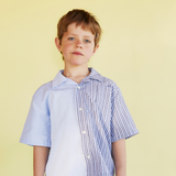 Two-tone boxy fit short sleeve shirt. Boomeranged from classic men’s shirts. Preserving the original button stand and hemlines.
