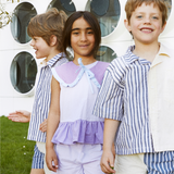 Two-tone shorts with elastic waist. Boomeranged from classic men’s shirts. Preserving the original back pocket. Pair it with the matching Top for an iconic look.